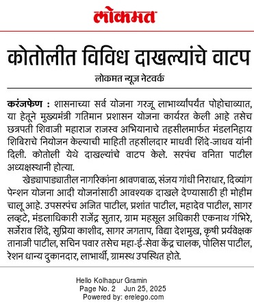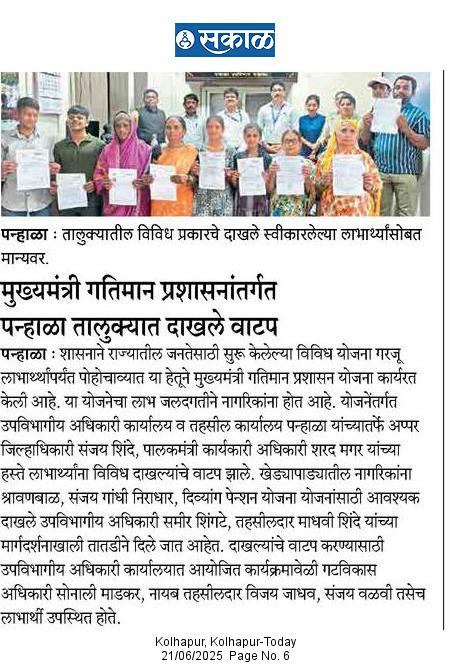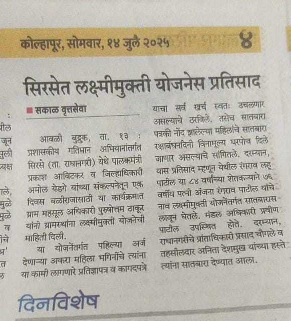 मुख्यमंत्री प्रशासकीय गतिमानता अभियानाअंतर्गत मौजे कसबा वाळवे मंडळांतर्गत छत्रपती शिवाजी महाराज महाराजस्व समाधान शिबीर अभियाना अंतर्गत या शिबीरामध्ये वाळवे मंडळाअंतर्गत येणा-या लाभार्थ्यानां उत्पन दाखले वाटप, विदयार्थ्यानां शैक्षणिक दाखले वाटप, फेरफार नोंदी निर्गत केल्या, फार्मर आय डी, ॲग्रीस्टॅक, संगायो व इंगायो लाभार्थी यांना मंजुरीचे पत्र वाटप केले.