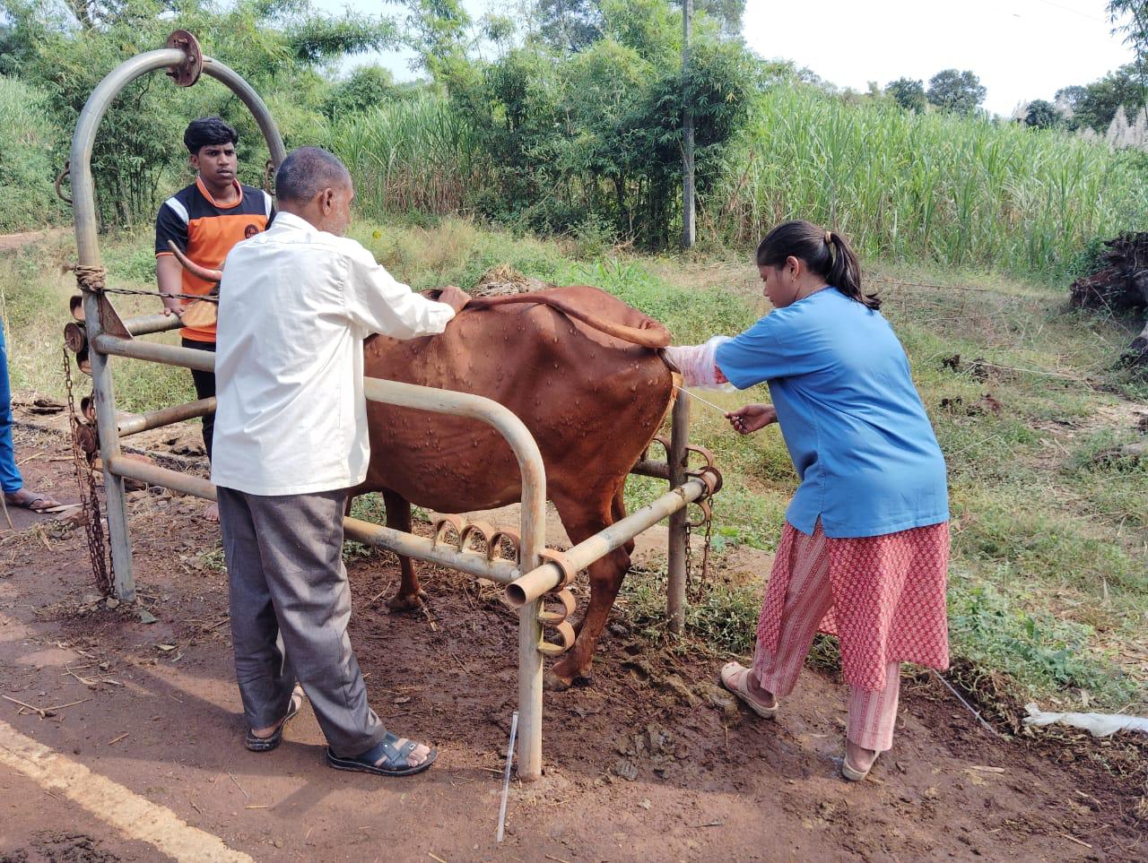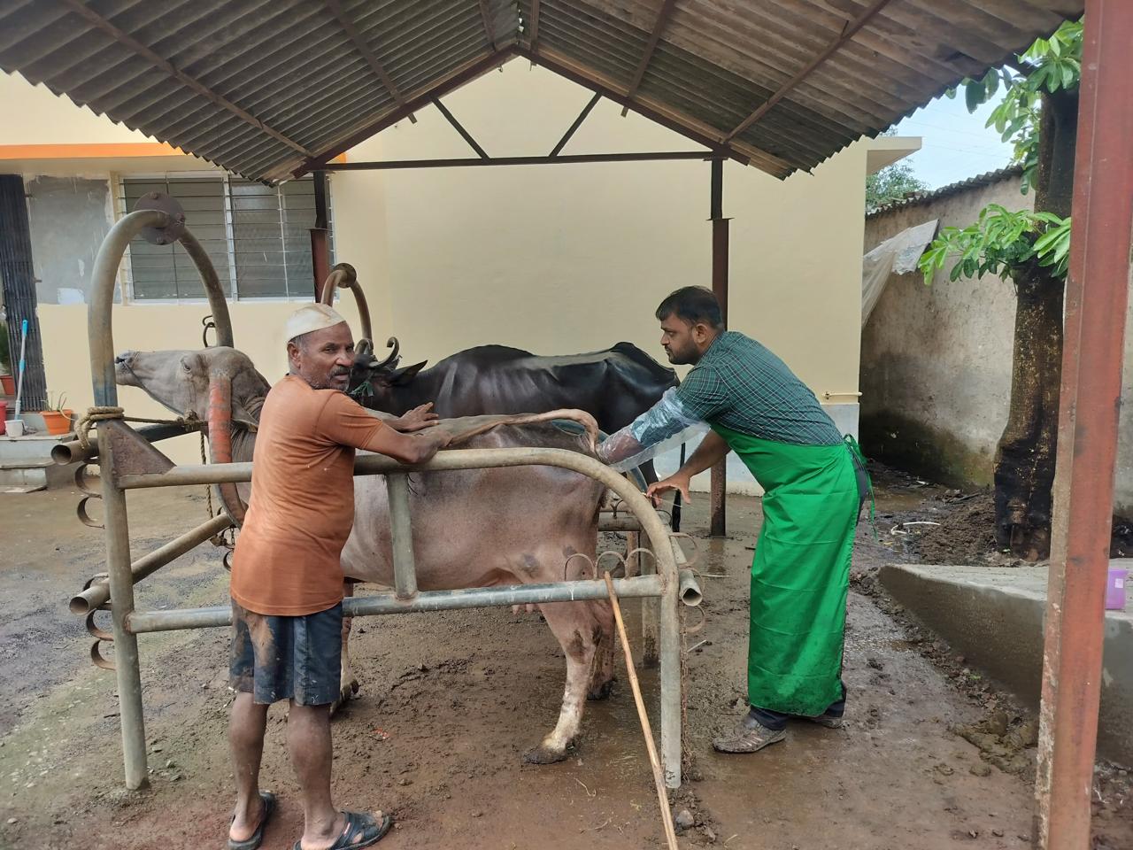 पशुवैद्यकीय चिकीत्स्यालय कोतोली ता. पन्हाळा येथे कृत्रिम रेतन करताना डॉ. अविनाश जाधव पशुधन विकास अधिकारी