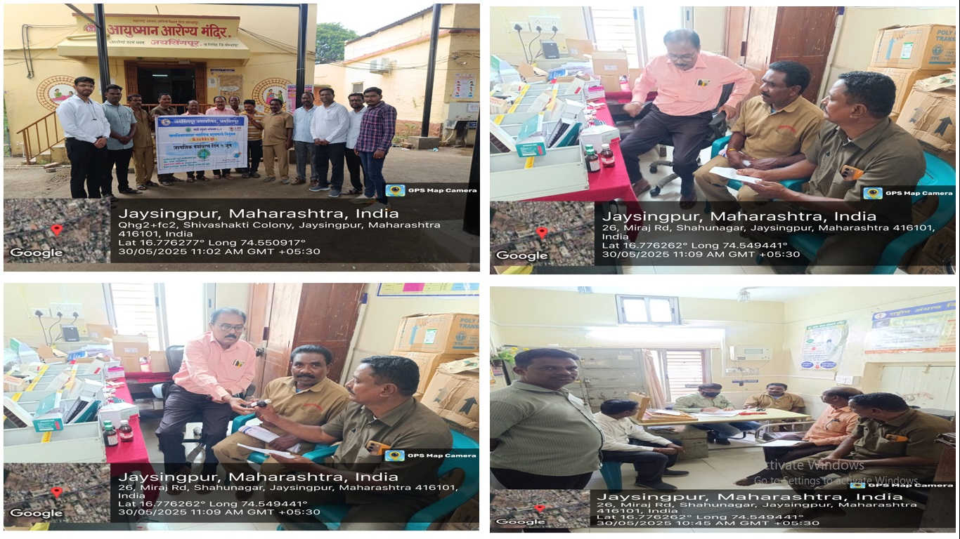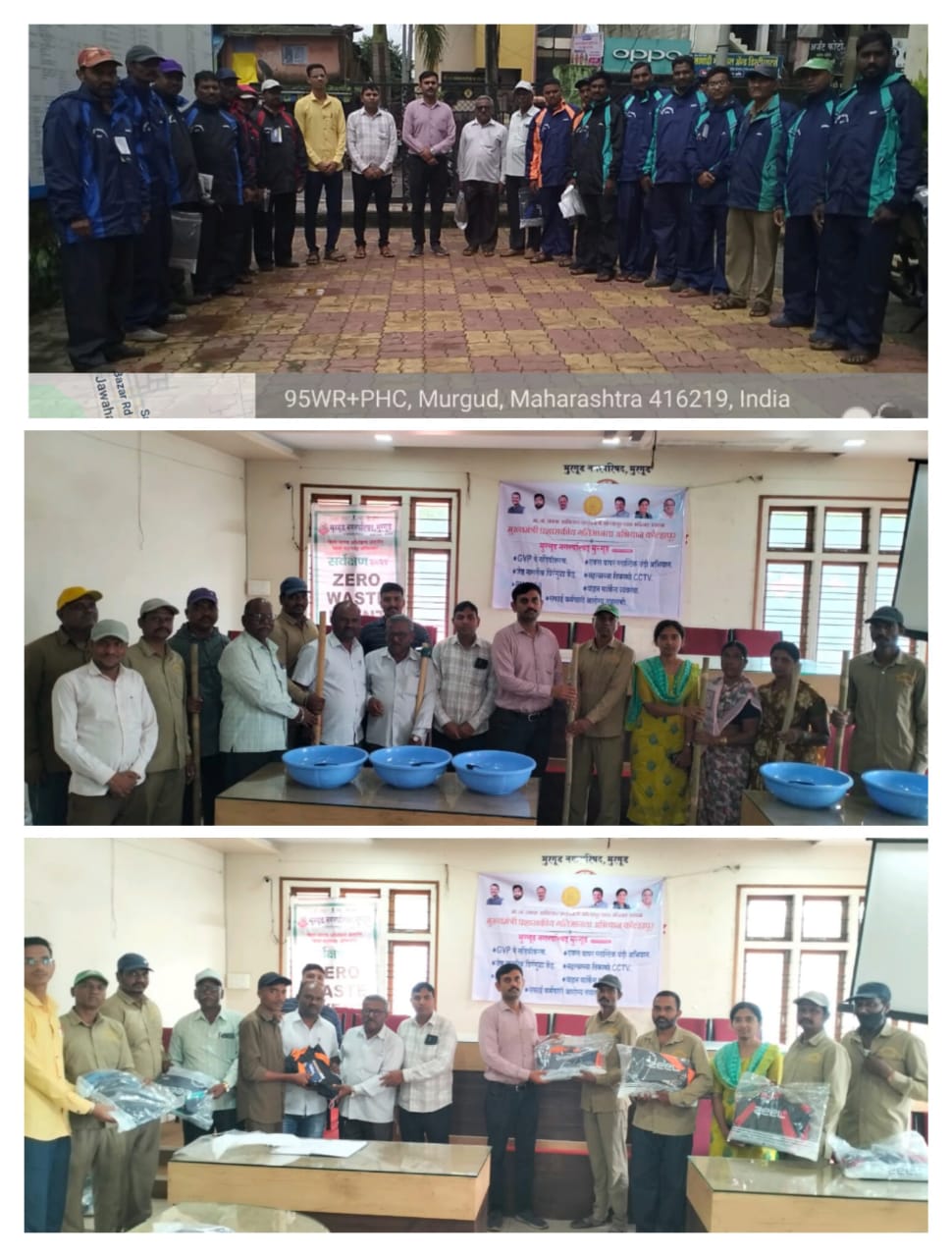मुरगूड नगरपरिषद,मुरगूड सन २०२५-२०२६ दिनांक ०३/०७/२०२५ रोजी मुख्यमंत्री प्रशासकीय गतिमानता अभियान अंतर्गत आस्थापनेवरील २८ कर्मचार्यांना रेनकोट,खोरी,पाटी,खुरपी,गमबूट,ग्लोज,मास्क मा.मुख्याधिकारी मा.श्री.अतिश वाळूंज,कार्यालयीन अधीक्षक श्रीमती.स्नेहल नरके, स्वच्छता निरीक्षक श्री.सचिन भोसले यांच्या हस्ते वाटप करण्यात आले आहेत.