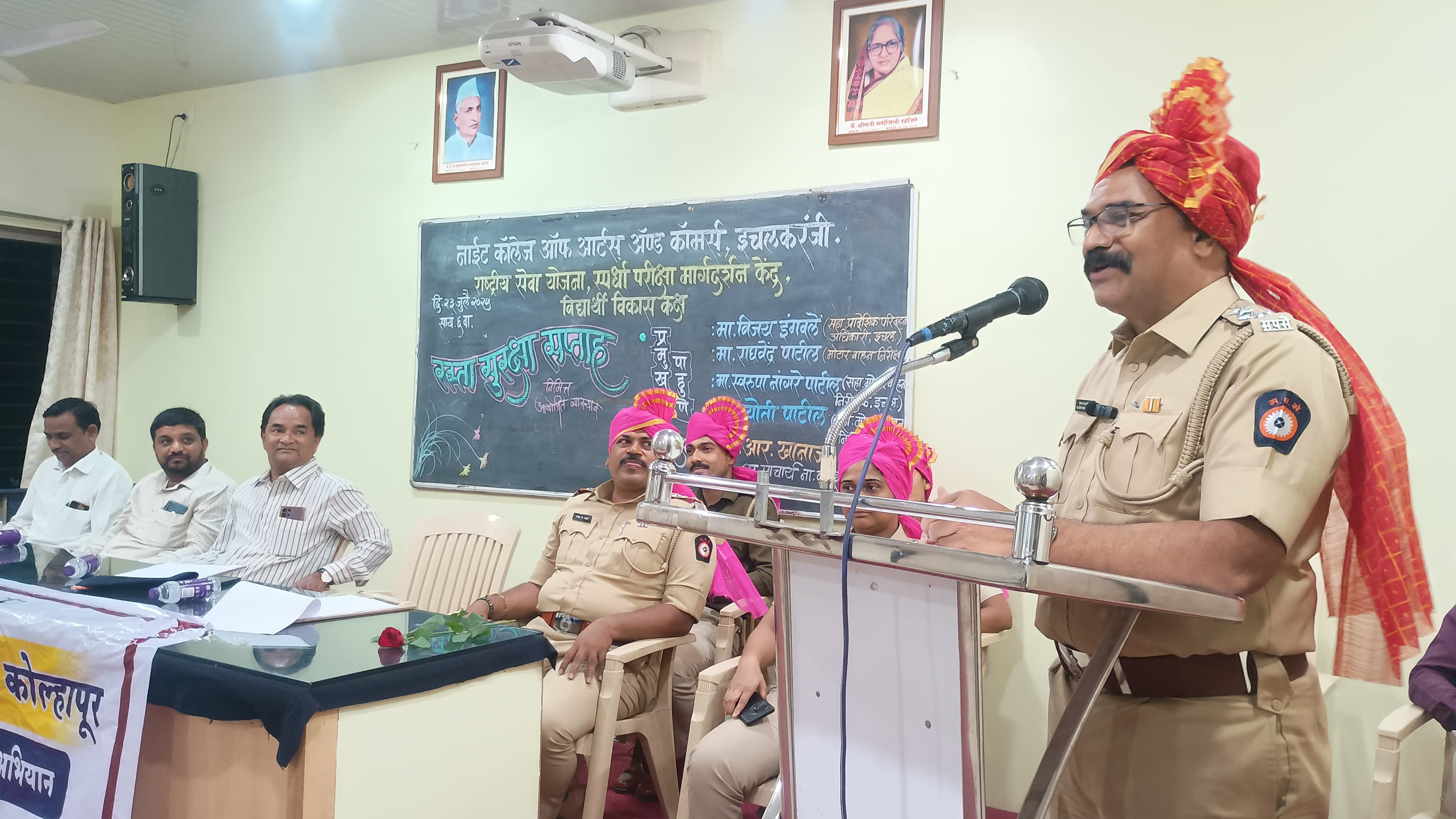 प्रमुख पाहुणे इचलकरंजी येथील सहाय्यक प्रादेशिक परिवहन अधिकारी विजय इंगवले, मोटर वाहन निरीक्षक राघवेंद्र पाटील, सहाय्यक मोटर वाहन निरीक्षक ,दत्तात्रय शिर्के, ज्योती पाटील आणि