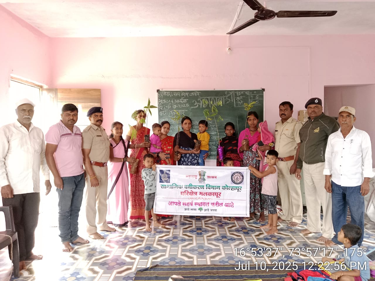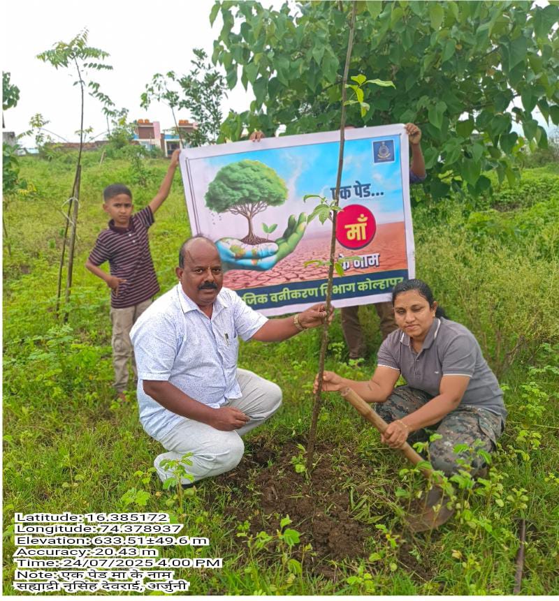 वनक्षेत्रपाल सामाजिक वनीकरण कागल वनपाल हमिदवाडा यांची मार्फत मौजे अर्जुनी येथील गायरान क्षेत्रामध्ये एक पेड मा के नाम या उपक्रमांतर्गत वृक्षारोपण केली