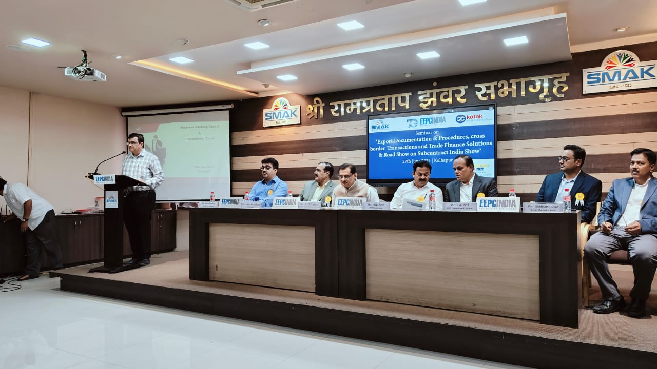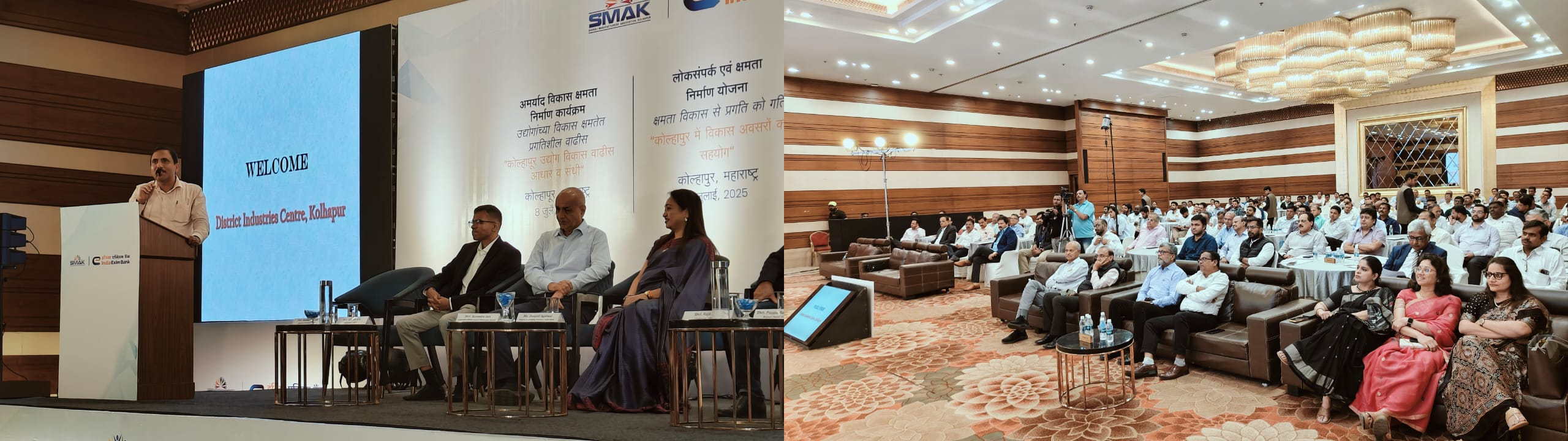 मुख्यमंत्री प्रशासकीय गतिमानता अभियानांतर्गत दिनांक 8 जुलै 2025 रोजी SMAC भवन, कोल्हापूर येथे एक्झिम बँकच्या निर्यात प्रोत्साहन योजनेंतर्गत शिरोली मॅनुफॅक्चर्स असोसिएशन कोल्हापूरला देण्यात आलेल्या 3D प्रिसिजन स्कॅनिंग आणि सिमुलेशन टेक्नॉलॉजी मशीनचे अनावरण करण्यात आले. तसेच सयाजी हॉटेल, कोल्हापूर येथे एक्स्पोर्ट आउटरिच कार्यक्रम आयोजित करण्यात आला होता. कार्यक्रमात अभियांत्रिकी, टेक्सटाइल विविध क्षेत्रातील 200 उद्योजक उपस्थित होते. सदर कार्यक्रमात मा.महाव्यवस्थापक श्री. अजयकुमार पाटील यांनी उपस्थित उद्योजकांना मार्गदर्शन केले. कोल्हापूर जिल्ह्याची निर्यात क्षेत्रातील प्रगती, तसेच जास्तीत जास्त उद्योजकांनी निर्यातदार बनण्यासाठी निर्यात धोरणे व विविध योजना याबाबत मार्गदर्शन केले. तसेच सदर कार्यक्रमात श्रीमती. दीपाली अग्रवाल, व्यस्थापकीय संचालक, एक्झिम बँक यांनी एक्झिम बँकेच्या निर्यात प्रोत्साहन योजनांबाबत मार्गदर्शन केले.