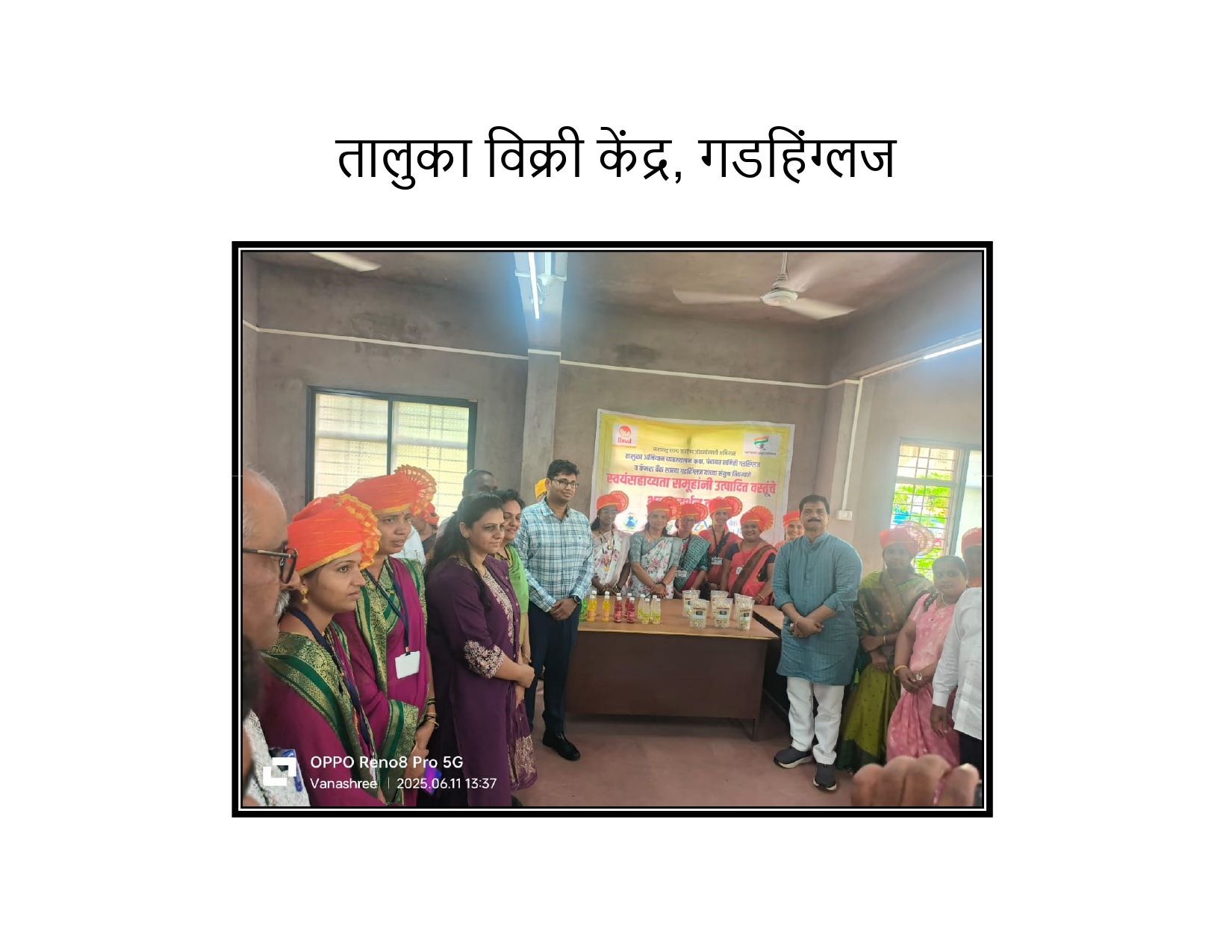 गडहिंग्लज तालुक्यातील तालुका विक्री केंद्र कार्यान्वित करणेत आलेले असून प्रभागसंघ व स्वयंसहाय्यता गटांना उपलब्ध करून देणेत आलेले आहे.