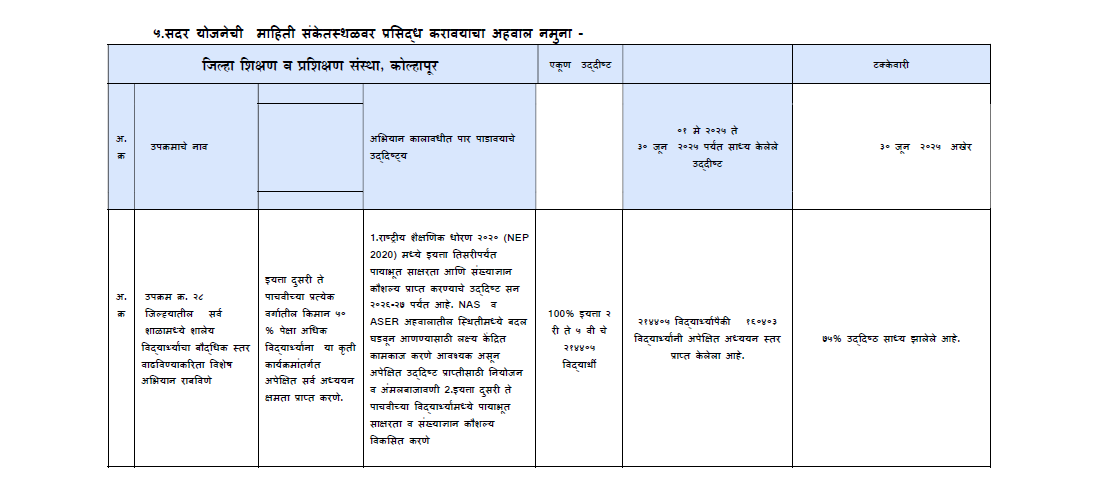 ७. कृती कार्यक्रमांतर्गत शिक्षकांनी आपल्या वर्गाचा अपेक्षित अध्ययनस्तर घोषित करणे.