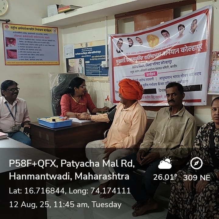 आज दि.८-७-२५ रोजी उपकेंद्र दिंडनेर्ली येथे प्राथमिक आरोग्य केंद्र इस पुरली व उपकेंद्र दिंडनेर्ली यांच्या संयुक्त विद्यमाने NCD camp आयोजित करण्यात आला होता.यामध्ये ज्येष्ठ नागरिक शिबिर ७७ लाभार्थींची तपासणी करण्यात आली व ७७ जणांची हिमोग्लोबिन तपासणी, आरोग्य तपासणी करण्यात आली. यावेळी समुदाय आरोग्य अधिकारी, आरोग्य सेवक, सेविका, सर्व आशा ताईं , रणजित एकले युवा मंच व गावकरी उपस्थित होते.