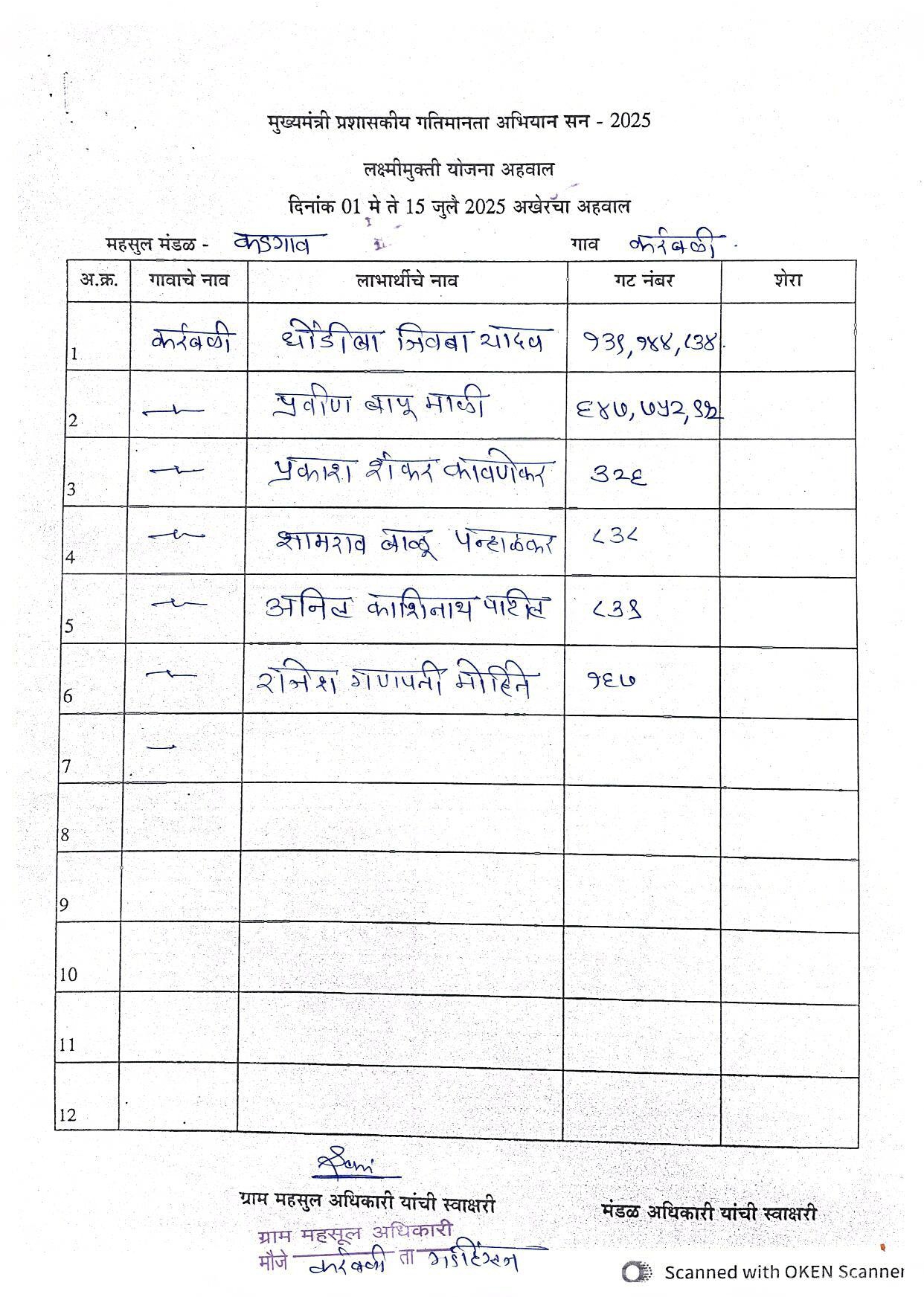 लक्ष्मी मुक्ती योजने अंतर्गत प्रत्येक गावातील किमान दहा शेतकऱ्यांच्या शेत जमिनीवर त्यांच्या पत्नीचे नांव सहधारक म्हणून नोंद करणे.