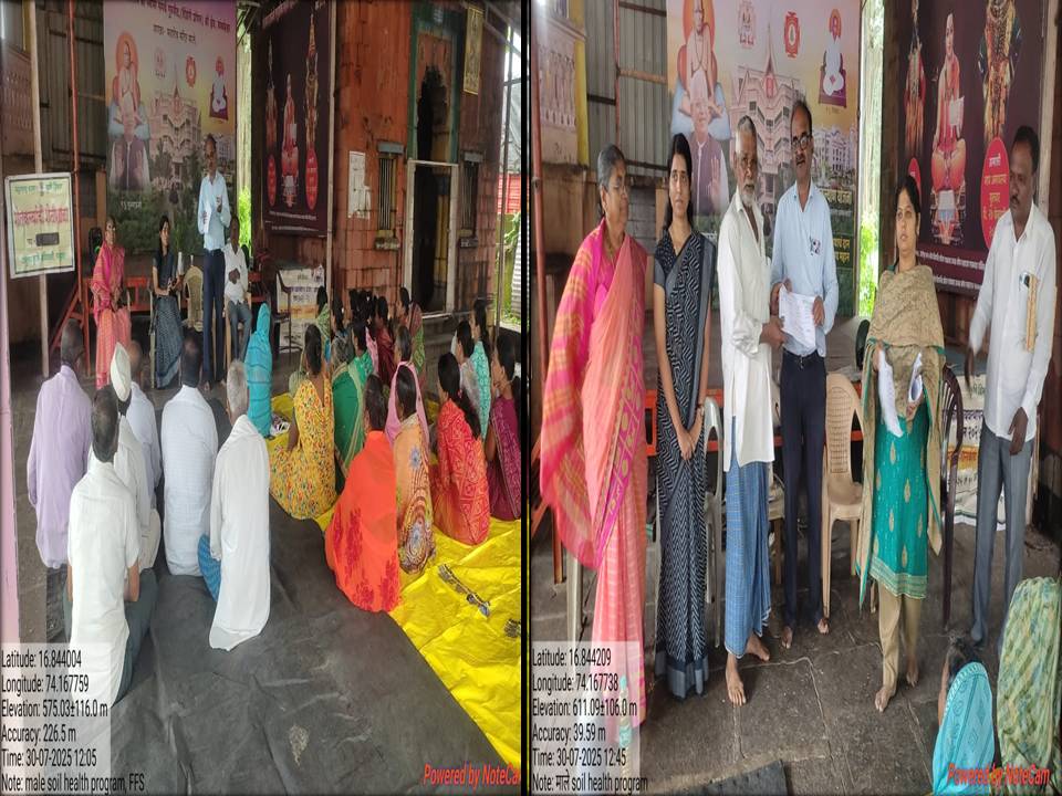 मौजे -माले ता -पन्हाळा जिल्हा-कोल्हापूर येथे आज दिनांक 30 जुलै 2025 रोजी महादेव मंदिर माले येथे राष्ट्रीय कृषी विकास योजनेअंतर्गत माती परीक्षण करणे साठी माले गावची निवड करण्यात आली होती.त्याप्रमाणे मृद नमुना 100 काढण्यात आले. मृदपरिक्षण अहवालानुसार खतांची मात्रा उपलब्ध कशी करावी आणि जमीन सुपिकतेचे महत्व या बाबत याबद्दल उपस्थित शेतकरी ,महिला भगिनी यांना मार्गदर्शन करण्यात आले.